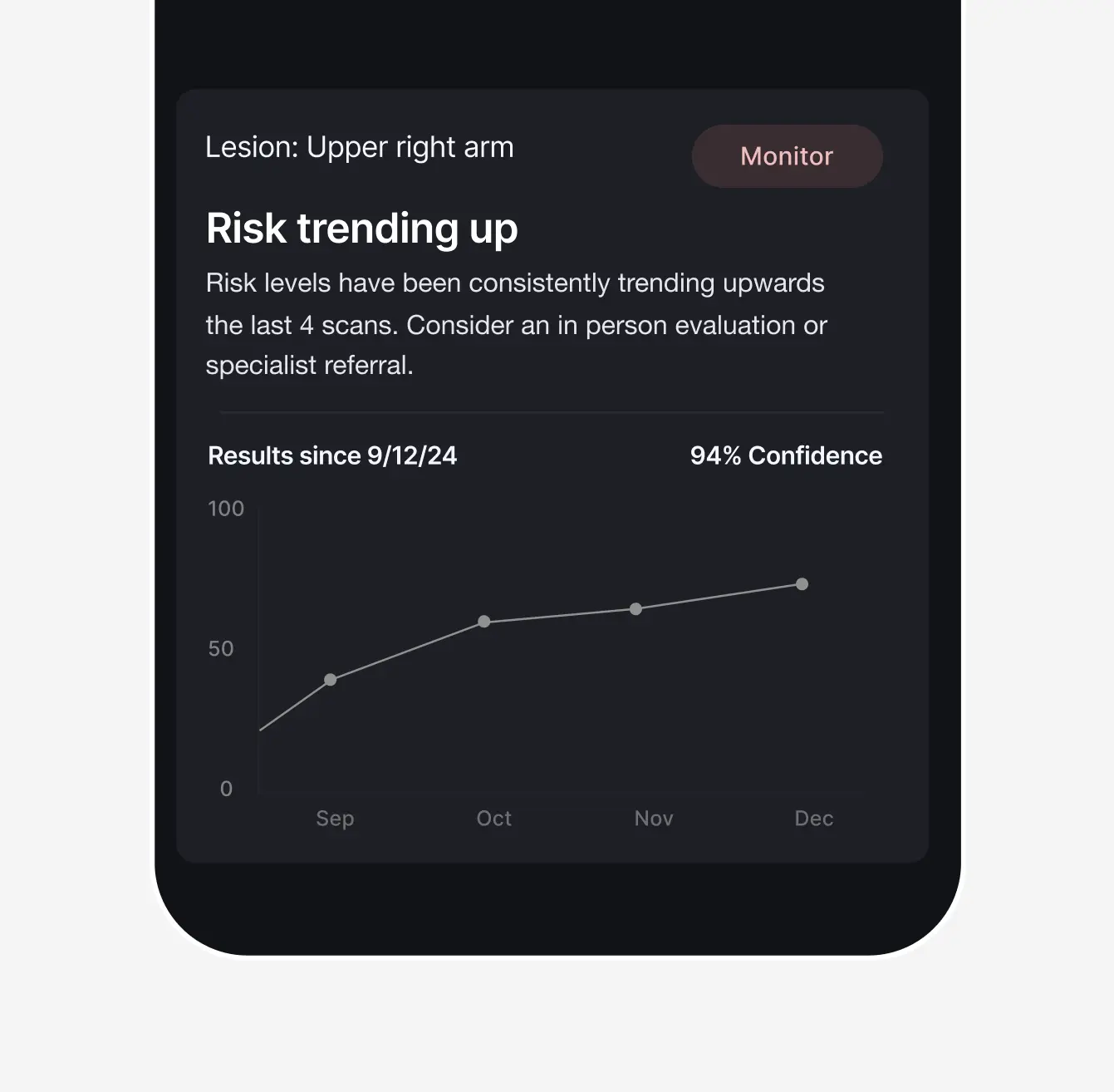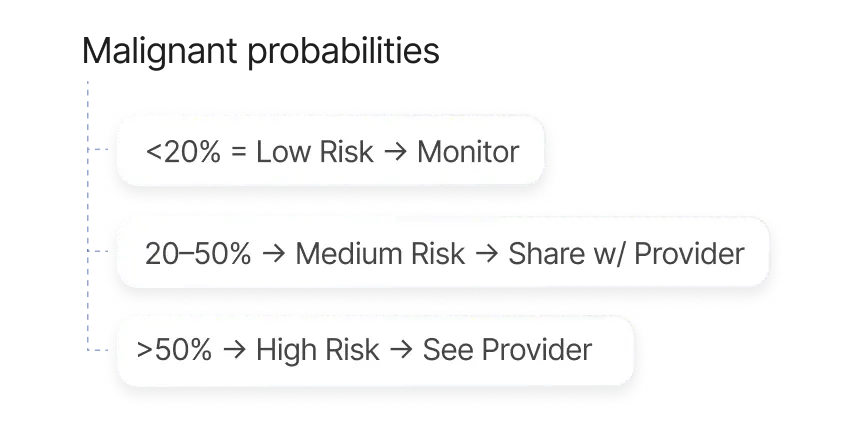 Rather than diagnosing melanoma, the system provides conservative risk signals and structured next steps designed to support referral decisions when certainty is low: the exact scenario that drives over-referral, system strain, and provider liability.