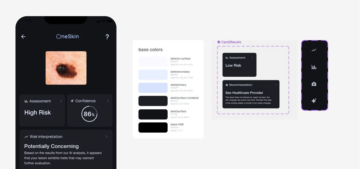 UI design extended beyond visuals into how information is framed, limited, and communicated because misinterpretation carried the highest risk. The interface was intentionally restrained to reduce cognitive bias and false reassurance.